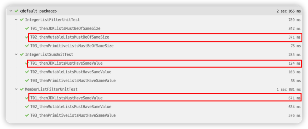 - 여러번 테스트를 수행하면서 조금씩 차이가 생기긴 했지만, 특히 MemberListFilterUnitTest의 경우에는 실행할 때마다 속도가 엎치락 뒤치락 했습니다.